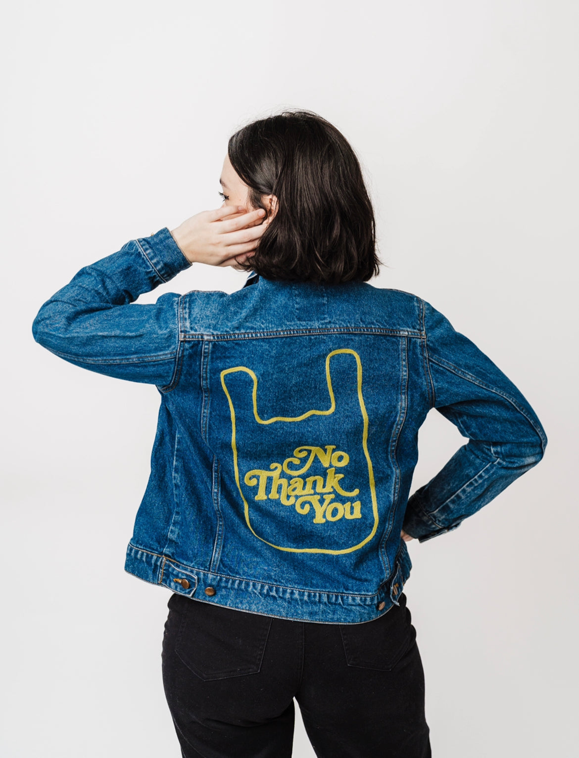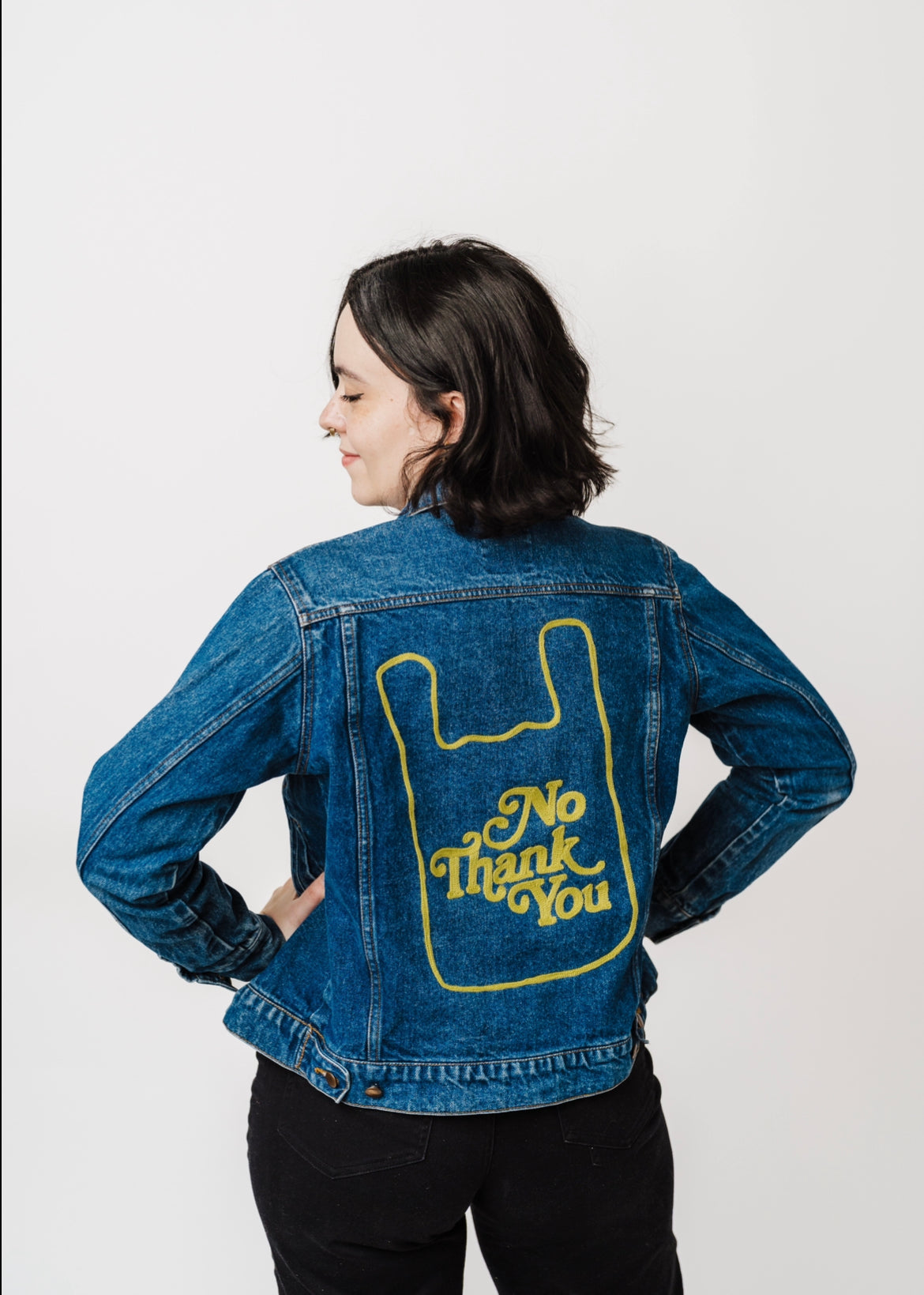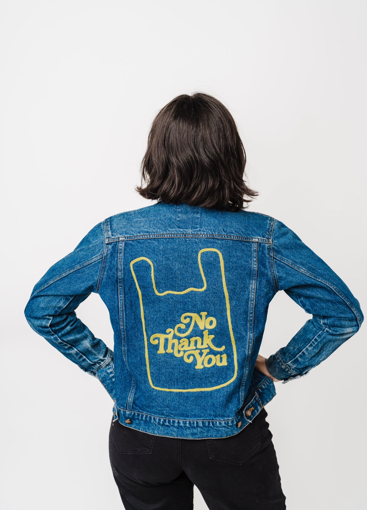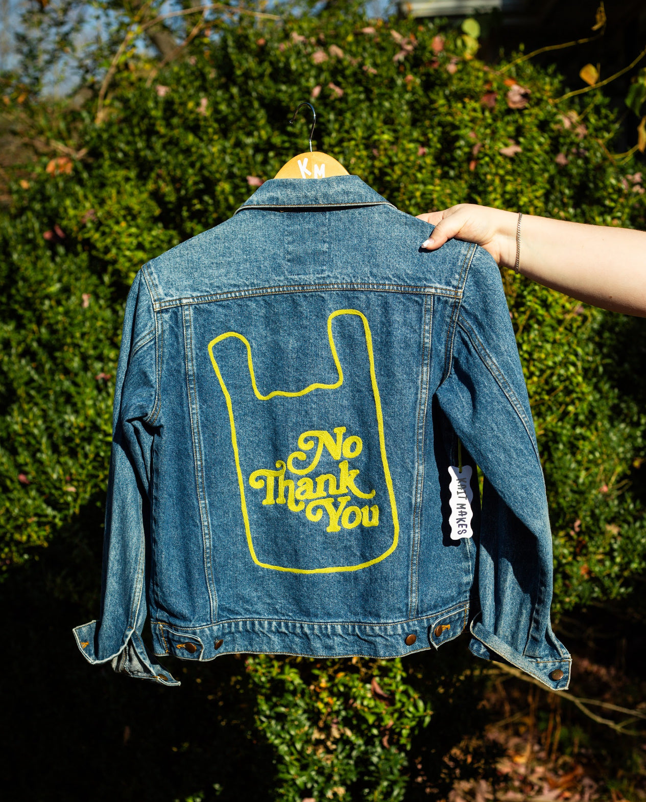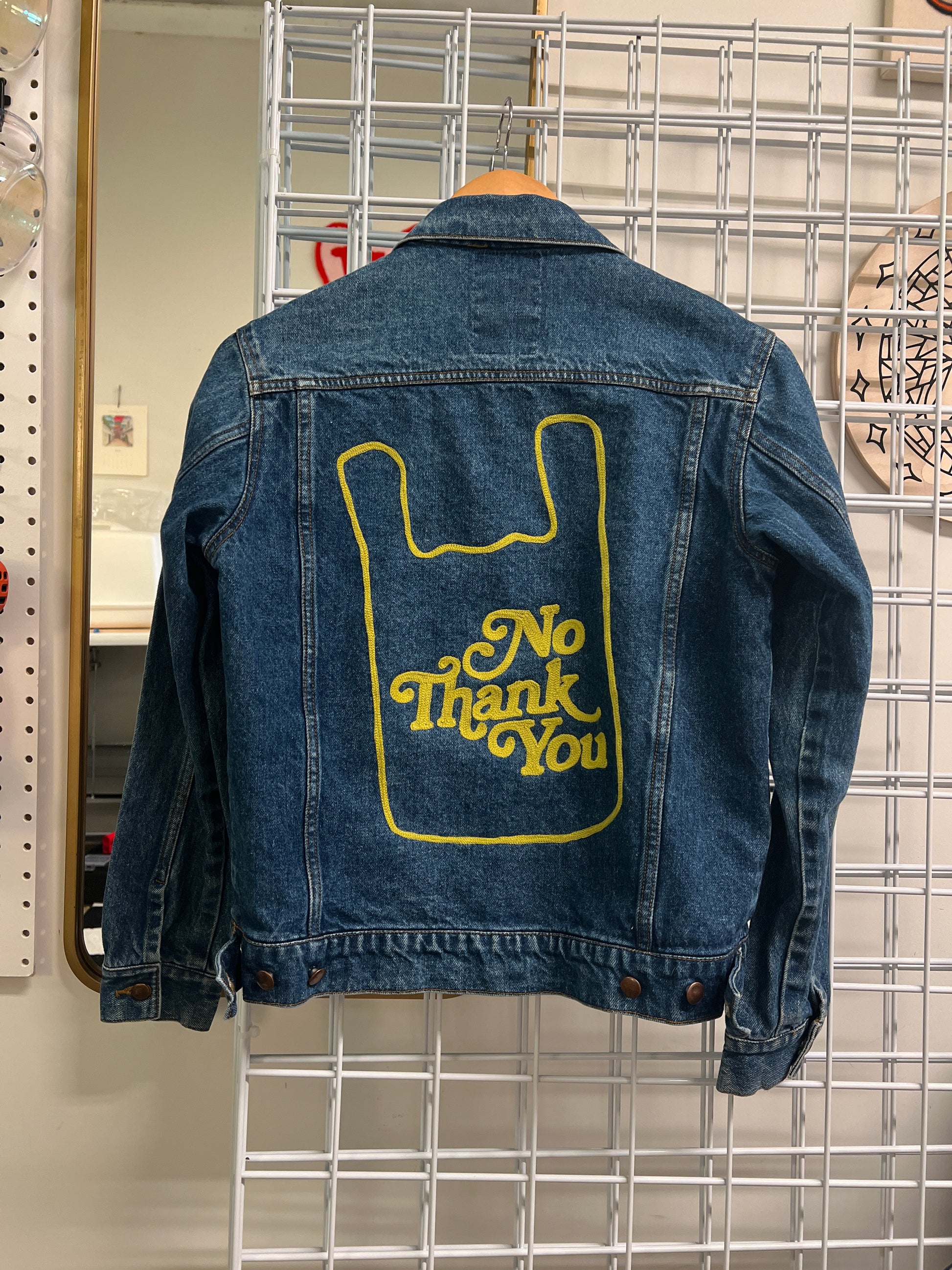 honestly, been finding myself saying no thanks more often than I used to. pretty excited about this jacket design! I’ve been planning this ever since I found the exact font on everyone’s fave bodega plastic bag. It’s a 2022 vibe if you will.