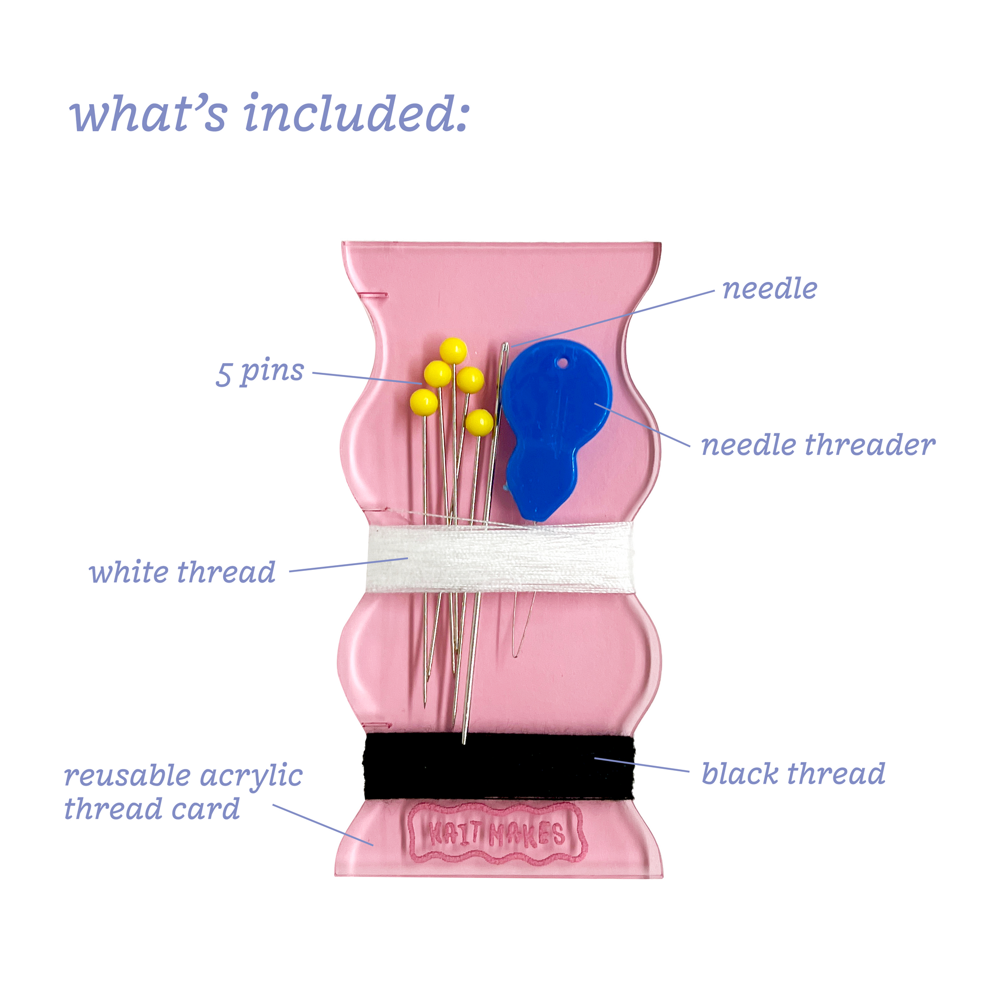 Most of my patches are not iron-on for maximum flexibility and because we all change our minds all the time, but I realize not everyone has a needle and thread lying around. ENTER: Kait Makes thread kits to sew on your patches at home!