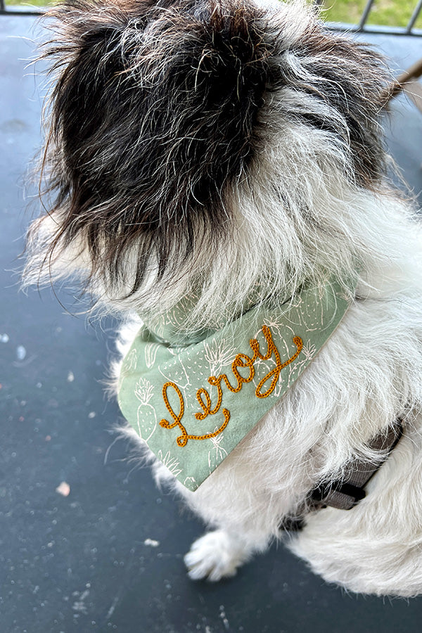 - Choose the bandana pattern you prefer (Leroy is wearing Sage Cactus with gold thread)